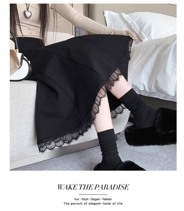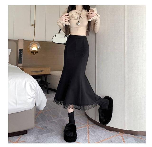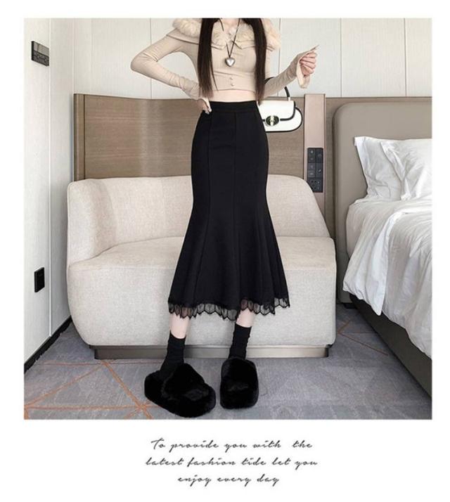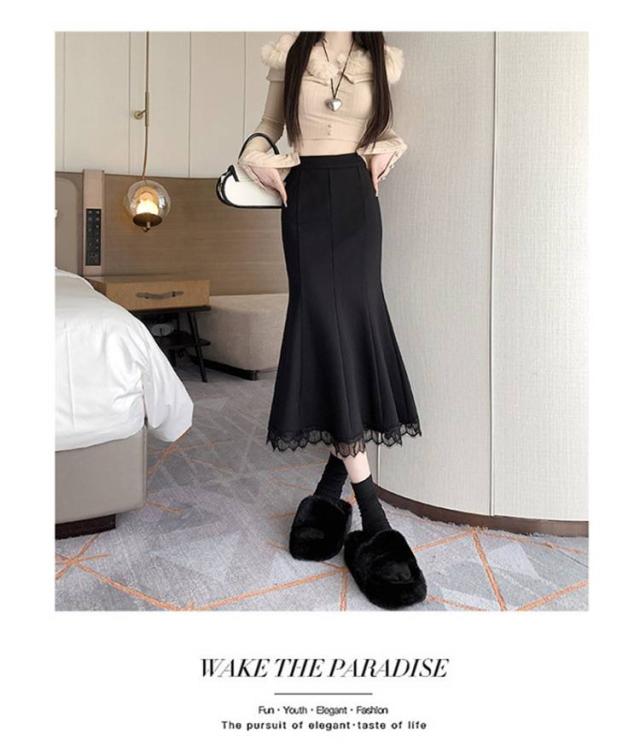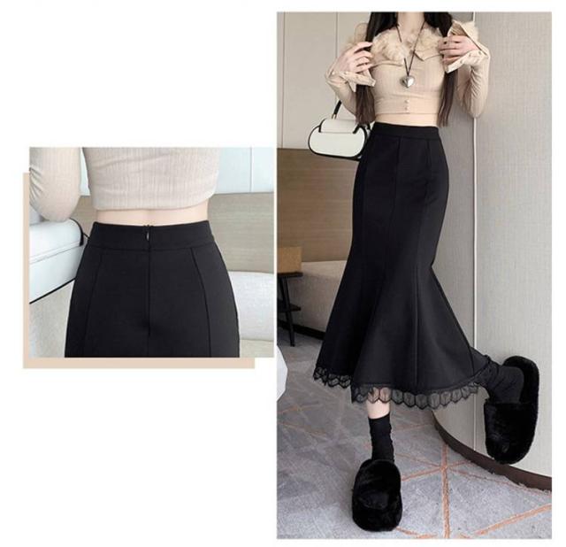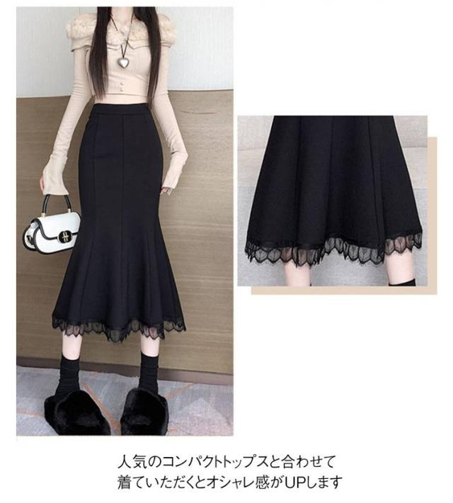 マーメイドスカート ロングスカート マキシスカート ロング ミモレ丈スカート スカート ロングスカート ハイウエスト 着痩せ 裾レース タイト 秋冬 春 秋