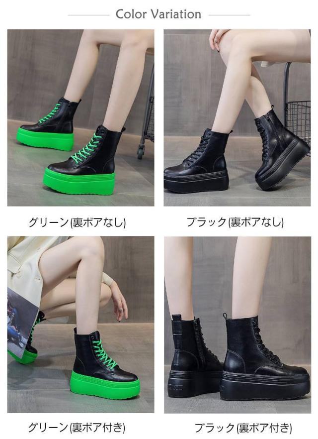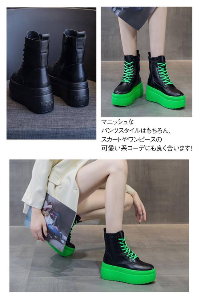ブーツ 編み上げ ブーツ ブーツ 裏起毛 レースアップ 秋冬 厚底靴 厚底 疲れない 8cmヒール ショートブーツ 春 小さサイズ 大きサイズ グリーン ブラック おしゃれ ハロウィン ダンス