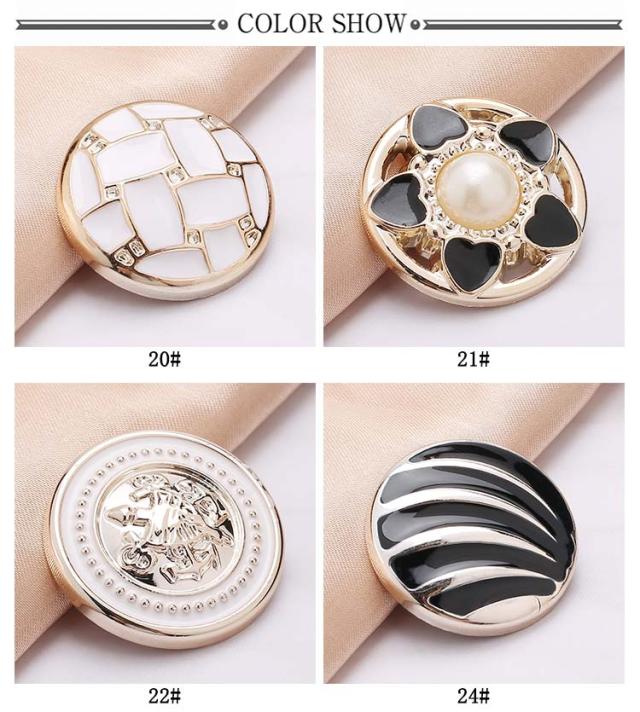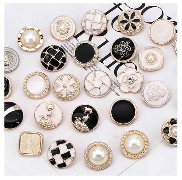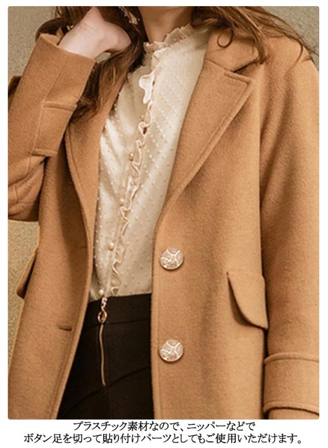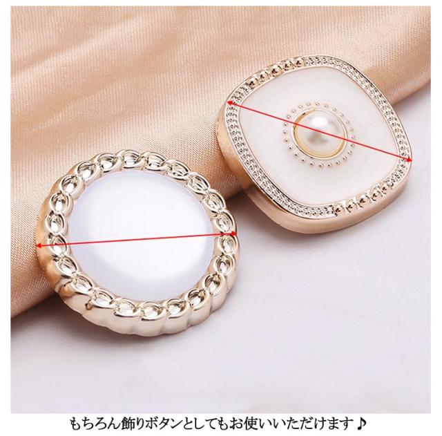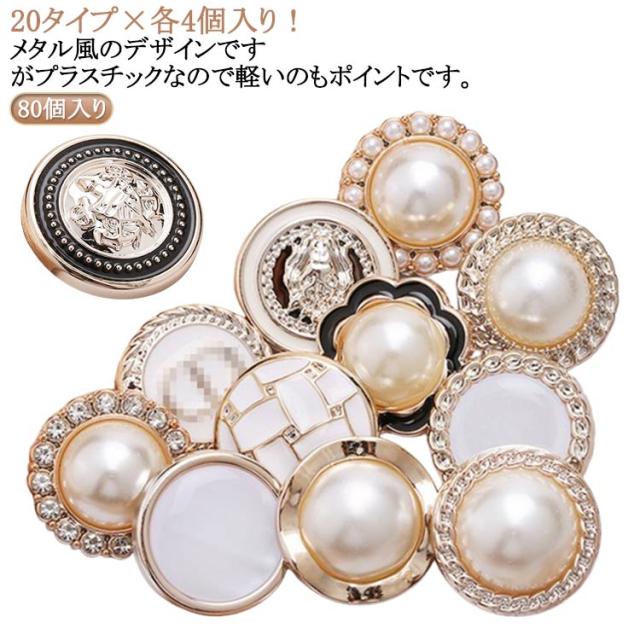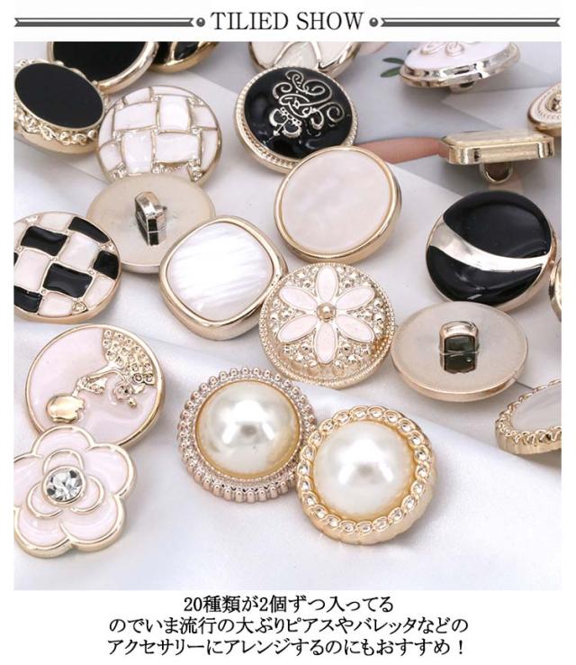 | 20タイプ×各4個入り! メタル風のデザインですがプラスチックなので軽いのもポイントです。 20種類が2個ずつ入ってるのでいま流行の大ぶりピアスやバレッタなどのアクセサリーにアレンジするのにもおすすめ! もちろん飾りボタンとしてもお使いいただけます♪ プラスチック素材なので、ニッパーなどでボタン足を切って貼り付けパーツとしてもご使用いただけます。 | |