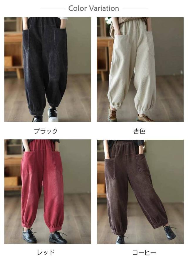 サーカスパンツ コーデュロイパンツ レディース コーデュロイ サルエルパンツ コーデュロイパンツ 秋冬 ワイドパンツ バルーンパンツ ウエストゴム ゆったり 大きサイズ 春 ポケット付き 30代 20代 40代