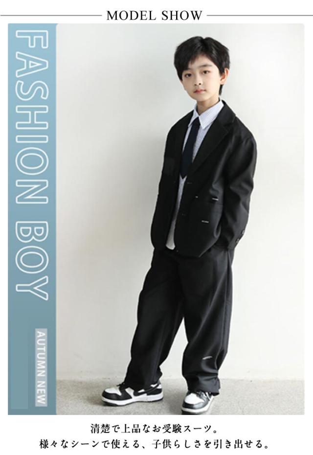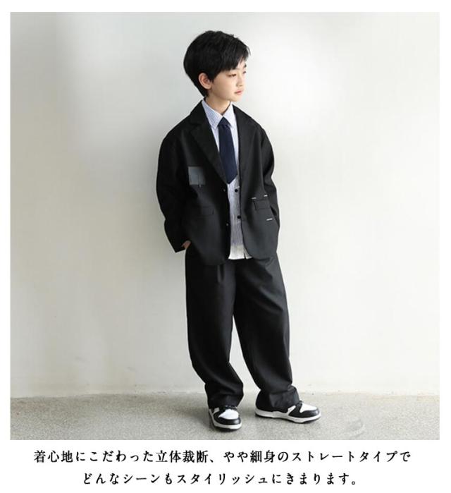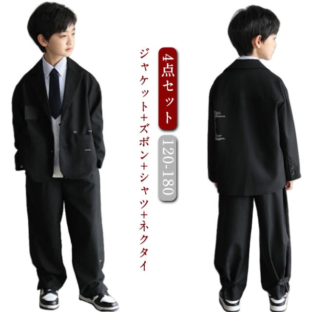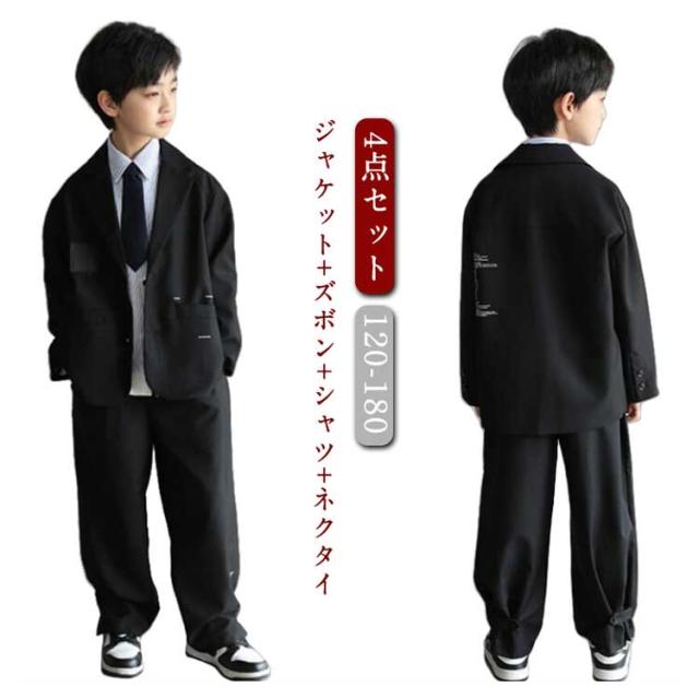 卒業式 カジュアルスーツ 男の子 スーツ フォーマルスーツ ネクタイ B系 男の子セット 卒業式 入学式 子供服 大きいサイズ 黒 ダンス衣装 シャツ ジャケット ズボン 卒業式 こどもスーツ 4点セット ゆったり 小学校 6年生