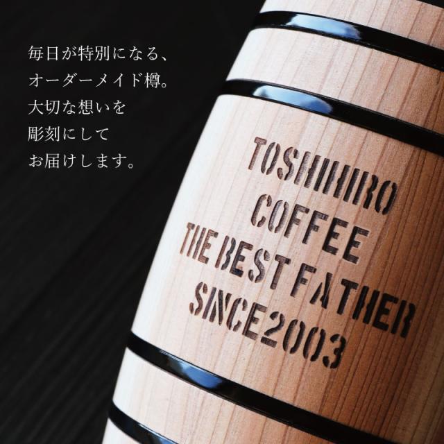 \名入れ&年号入り珈琲樽/国産杉を使った日本製の木樽とスターバックスハウスブレンド「オリガミ」をセットに。ご希望のお名前と年号でお作りします。