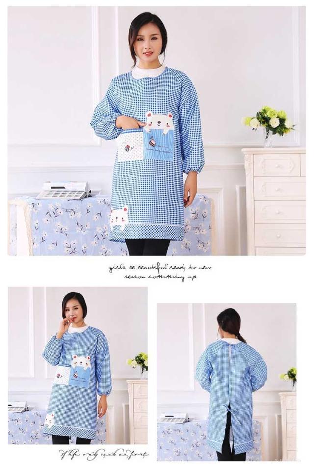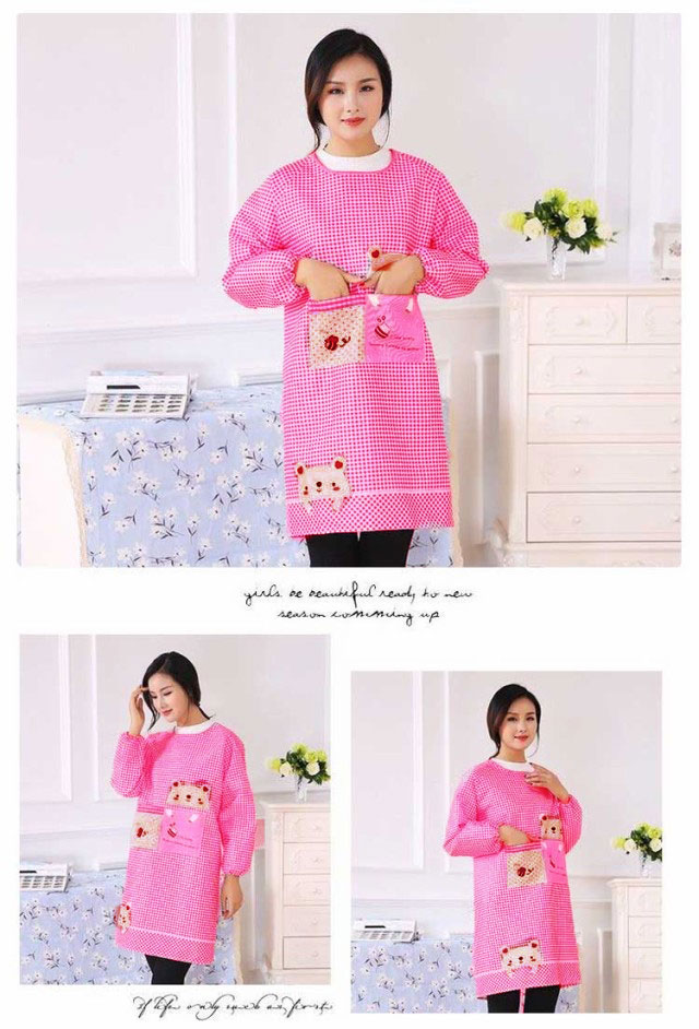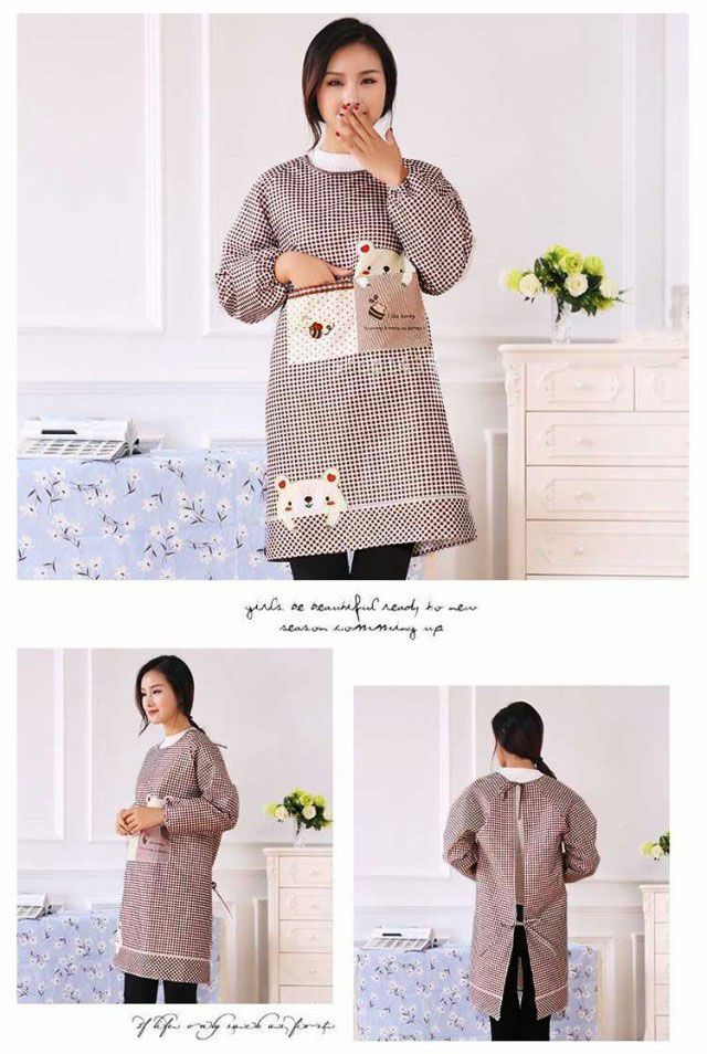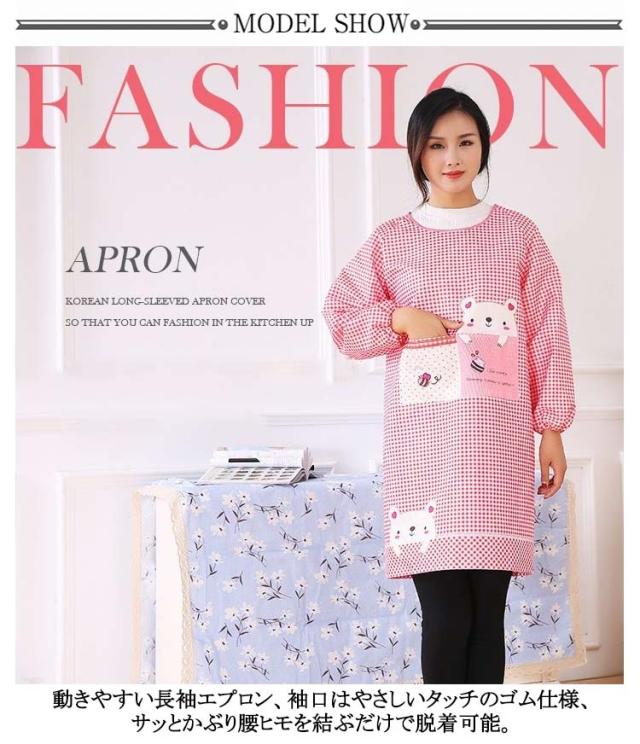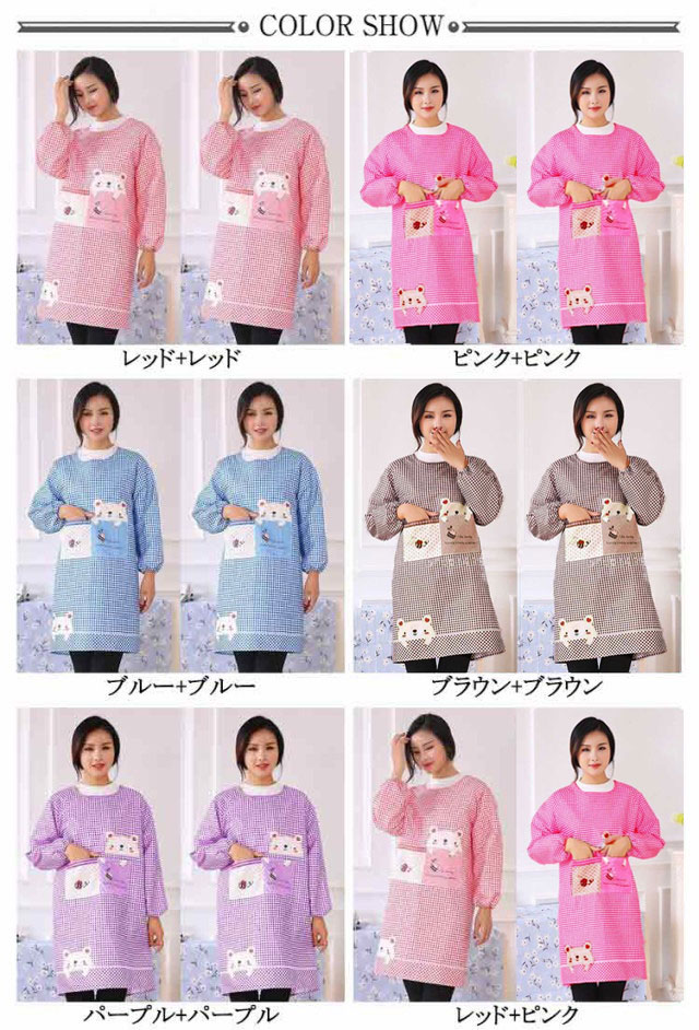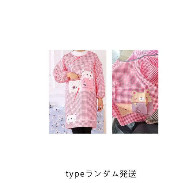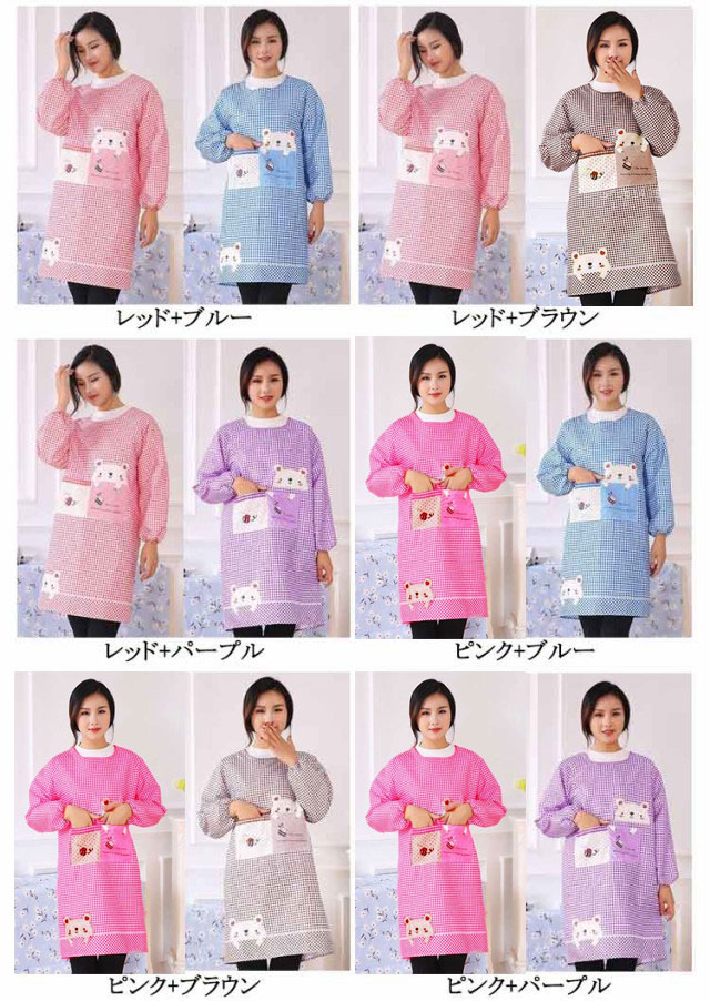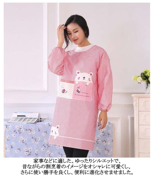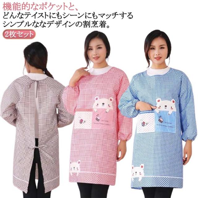 袖付き チェック 看護師 クマ柄 おしゃれ レディース ロング丈 長袖 大人用 2枚セット かっぽう着 割烹着 ポケット付き かっぽう着 家事 キッチン 保育士 飲食店 2枚セット クッキング かわいい ゆったり 大きめ シンプル 料理