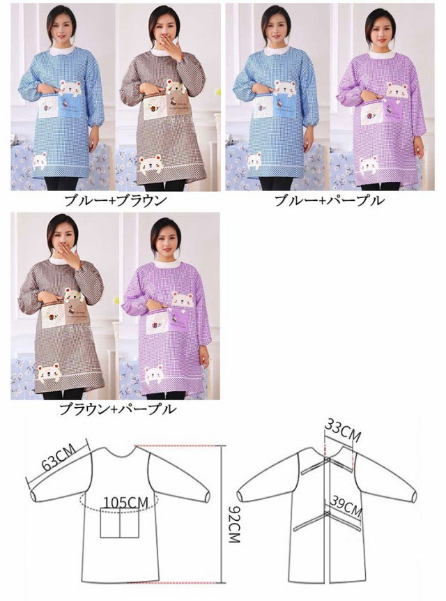 | 2枚セット 機能的なポケットと、どんなテイストにもシーンにもマッチするシンプルななデザインの割烹着 動きやすい長袖エプロン、袖口はやさしいタッチのゴム仕様、サッとかぶり腰ヒモを結ぶだけで脱着可能。 家事などに適した、ゆったりシルエットで、 昔ながらの割烹着のイメージをオシャレに可愛くし、 さらに使い勝手を良くし、便利に進化させませました。 | |