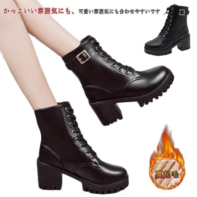 編み上げブーツ 疲れない レディース 袴 7.5CMヒール ブーツ レースアップ 袴用ブーツ レースアップブーツ 秋 黒 靴 歩きやすい 編み上げ 女の子 ショートブーツ 卒業式 成人式 コスプレ 厚底 ワークブーツ 軽量 冬 7.5CMヒール 春