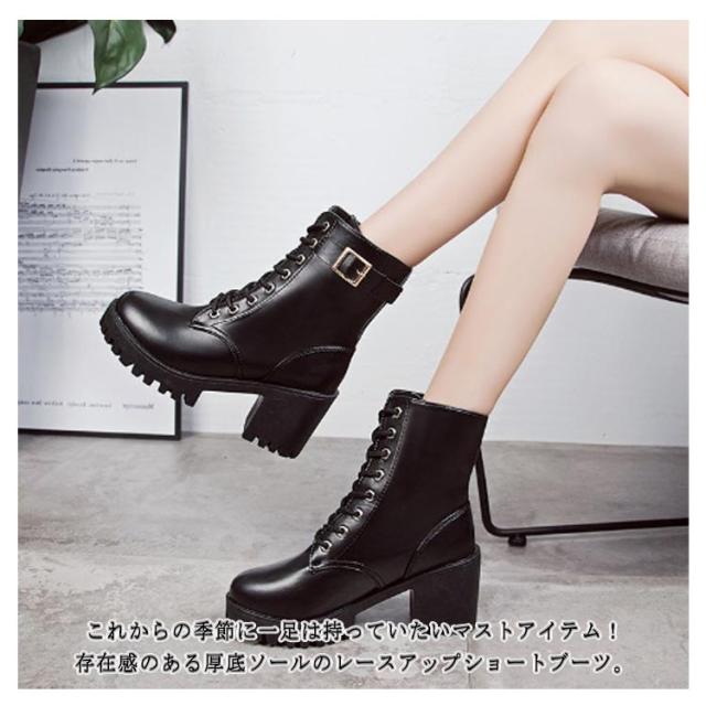 | かっこいい雰囲気にも、可愛い雰囲気にも合わせやすいです 大人可愛いショートブーツ!卒業式の袴姿に最適!毎日の通勤や通学、オフィスワークにもおすすめです。 これからの季節に一足は持っていたいマストアイテム!存在感のある厚底ソールのレースアップショートブーツ。 雨や雪などのあらゆる環境でも丈夫で歩行できるよう滑りにくい設計です。 側面のベルトがアクセントに!長時間履いていても疲れにくく楽に過ごせます。 デニムやカーゴに合わせたカジュアルはもちろんワークブーツ、コスプレアイテムとしても合わせられます。 | |