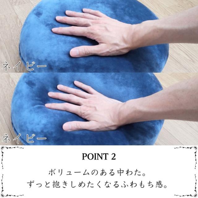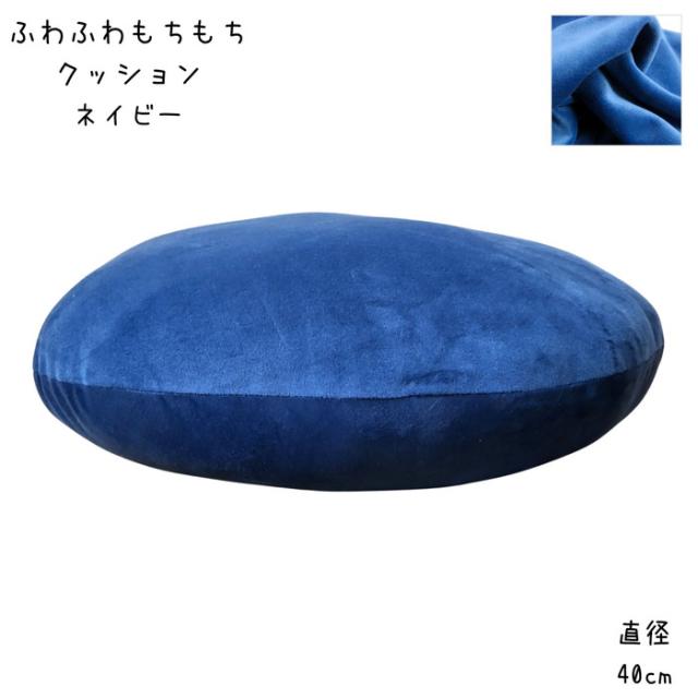 ふわふわもちもちクッション ネイビー色 丸型 直径40cm ふっくらボリューム ふっくらふわふわ抱き心地