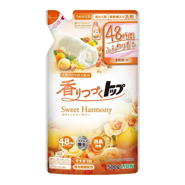 [ライオン]香りつづくトップ スウィートハーモニー 詰替 500g (柔軟剤入り 洗濯洗剤 消臭 アロマ成分配合)
