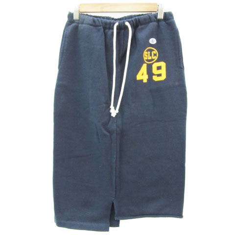 【中古】チャンピオン CHAMPION タイトスカート ミモレ丈 裏起毛 M ネイビー 紺 /YM16 レディース