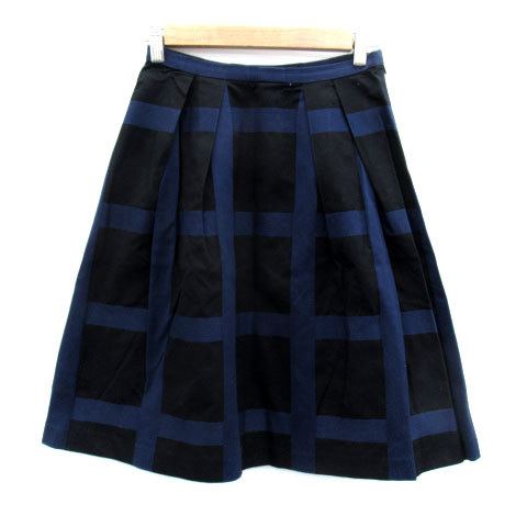 【中古】トゥモローランドコレクション フレアスカート チェック柄 34 XS 小さいサイズ 紺 ネイビー 黒 ブラック