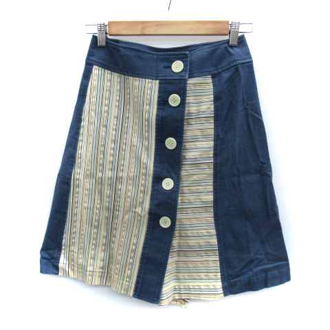 【中古】ミスアリス MISS ALICE フレアスカート ひざ丈 ストライプ柄 切替 2 マルチカラー 青 ブルー レディース