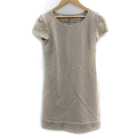 【中古】エムズセレクト m’s select ワンピース ひざ丈 半袖 ラウンドネック ブークレ 38 M ベージュ レディース