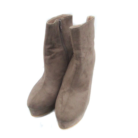 【中古】レディ ショートブーツ ポインテッドトゥ ピンヒール スエード調 M 23.5〜24cm 茶色 ピンクゴールド色
