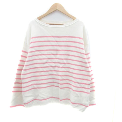 【中古】ニコアンド Niko and.. ニット セーター ラウンドネック 長袖 ボーダー柄 M オフホワイト ピンク