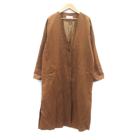 【中古】グローバルワーク ノーカラーコート スプリングコート ロング丈 麻 リネン混 F 茶色 ブラウン /HO7 レディース