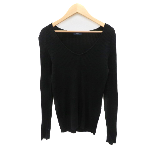 【中古】シップス SHIPS ニット カットソー 長袖 Vネック 黒 ブラック /YK29 レディース