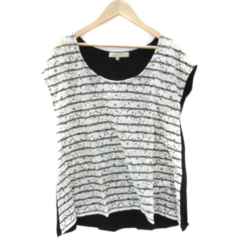 【中古】マーキュリーデュオ ブラウス カットソー ノースリーブ レース ボーダー柄 切替 F 黒 白 レディース