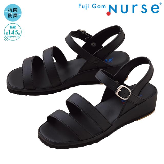 富士ゴムナース 二本線サンダル No.759 1足(23.0cm) ブラック【fujiGomNurse フジゴム ナースシューズ レディース 幅広3E 抗菌 防臭】