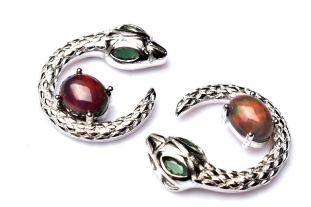 | 特徴・意味 | シルバー925素材で安心してご着用いただけます。 日頃のアクセサリーの一つにいかがですか? ※ヘビは「再生」や「繁栄」の象徴として、縁起の良い動物とされています。? オパールの語源は、古代サンスクリット語の「宝石」を意味する「ウパラ」であるとされています。オパールは水中で微小な珪酸球が沈殿し、岩石の隙間などに密に蓄積して形成される石です。水晶等と同じく、珪素をメインにする鉱物ですが、その成り立ちから、水分が多く、硬度も非常に柔らかい石です。 珪酸球の並びが規則的なものは、見る角度によって変化しながら虹のように輝きます。 このことを「遊色効果」と言います。 遊色効果のあるオパールを「プレシャスオパール」と言い、遊色効果のないオパールを「コモンオパール」と言います。 コモンオパールには、「イエローオパール」「ピンクオパール」などがあります。 |