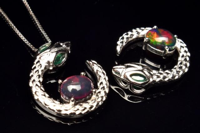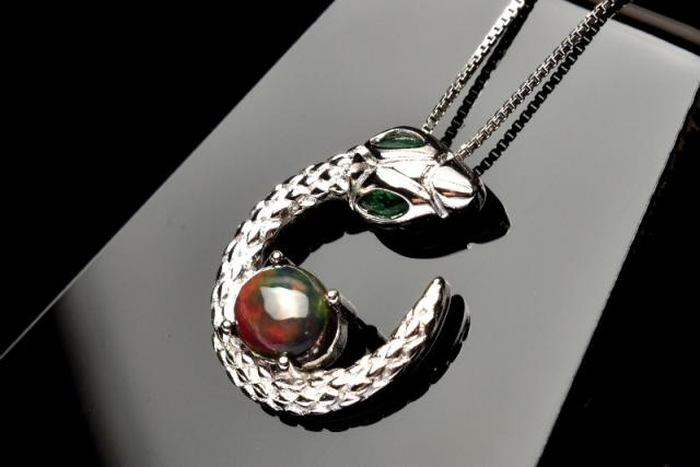 シルバー925 プレシャスオパール 7x5-6mm 蛇モチーフ ペンダントトップ 1個売り 金運・仕事運_PRG2209-3