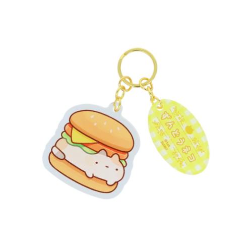 ずんどうネコ キーリング 2連アクリルキーホルダー ハンバーガー かわいい グッズ メール便可