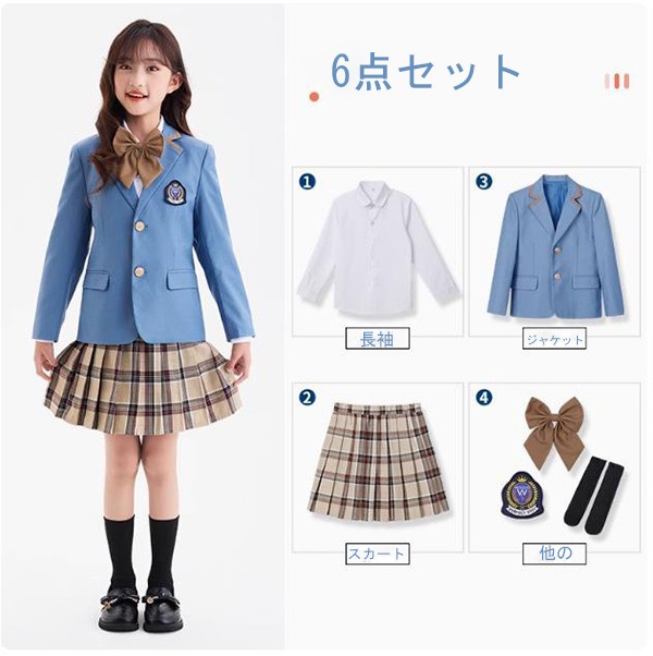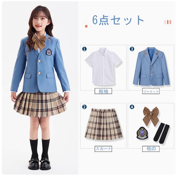 (女の子)6点セット:ジャケット/シャツ(長袖・短袖)/スカート/リボン/靴下/バッジ