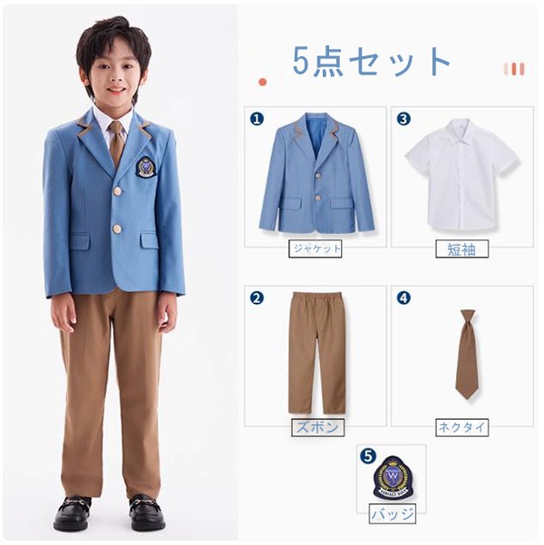 (男の子)5点セット:ジャケット/シャツ(長袖・短袖)/ズボン/ネクタイ/バッジ