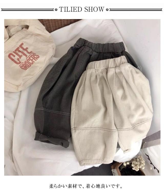 | 春秋に大活躍するキッズ用ロングパンツ。 柔らかい素材で、着心地良いです。 ウエストゴム仕様でストレスフリーです♪ 股上、もものあたりがゆったりめに作られているので、動きやすいし、ちょっとぽっちゃりめのおこさんでも着やすい。 | |