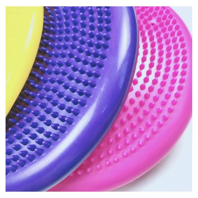 | バランスディスク どこでも気軽に体幹トレーニング バランスディスクは空気を入れたクッションのようなエクササイズグッズ。 | |