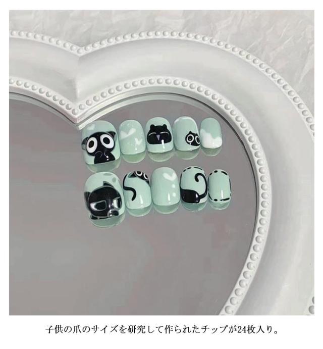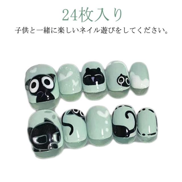 ネイルチップ キッズ ネイルチップ 子供 猫 ジェルネイル キッズ ネイルチップ 可愛い 24枚入り 子供 粘着剤付き ネイルチップ キャット ネコちゃん アートチップ 韓国 子供用 キャラクター
