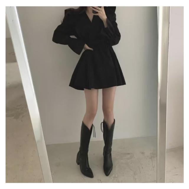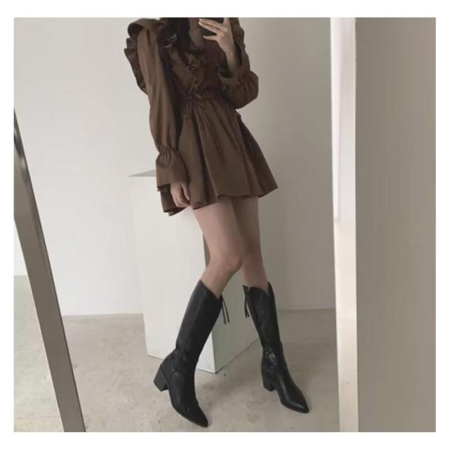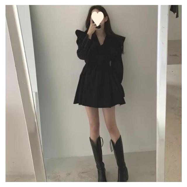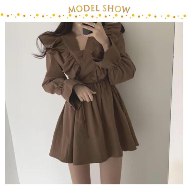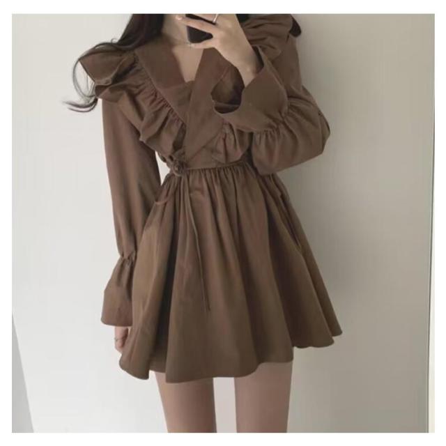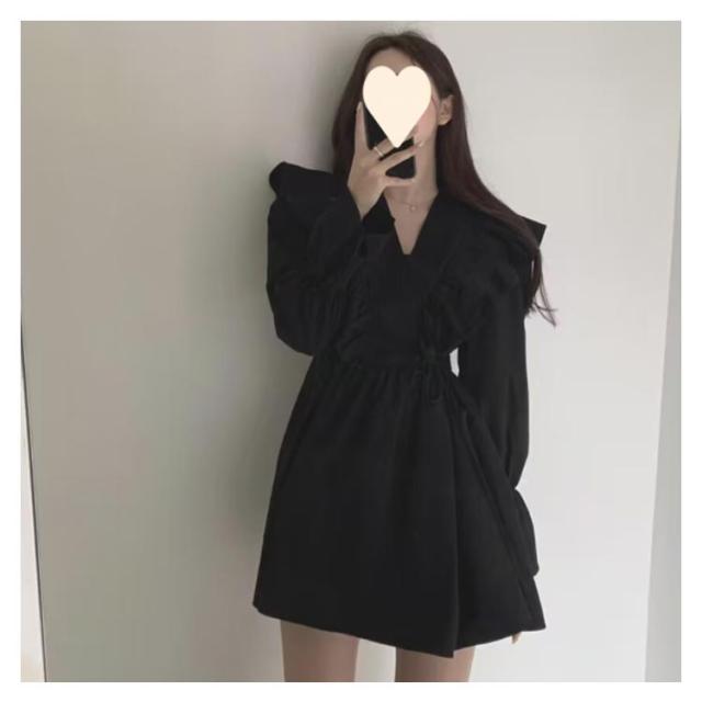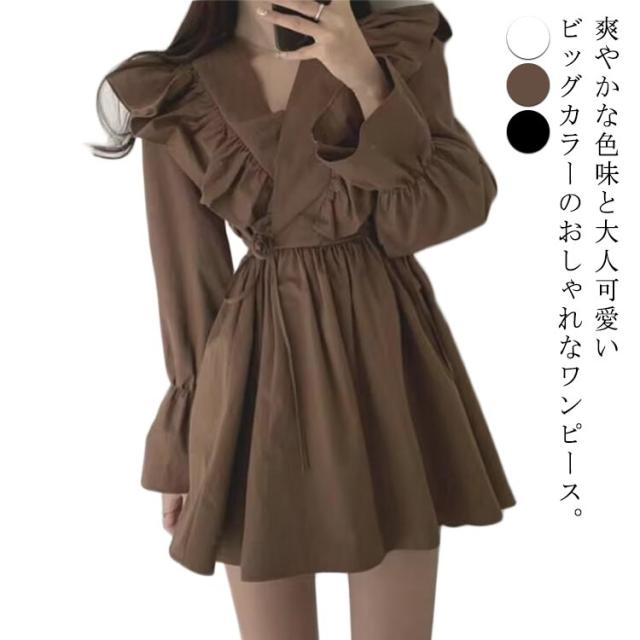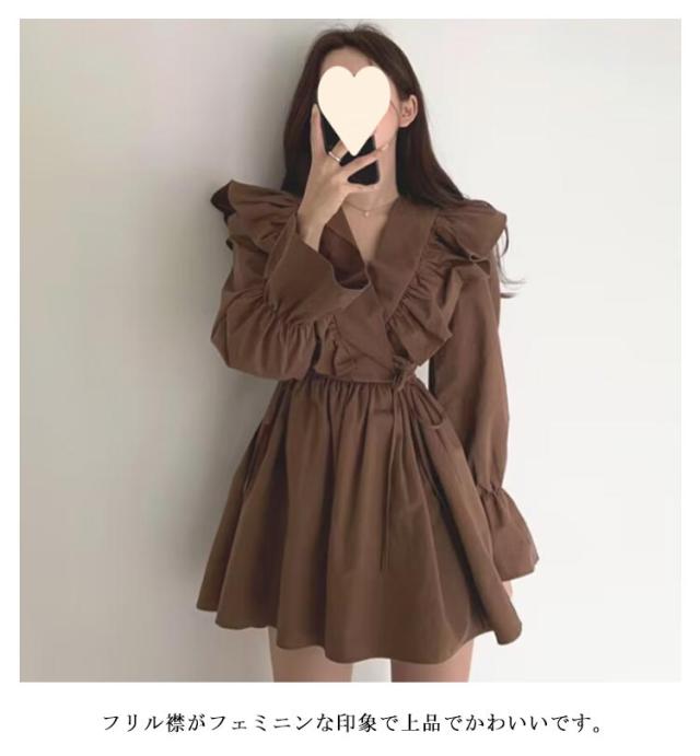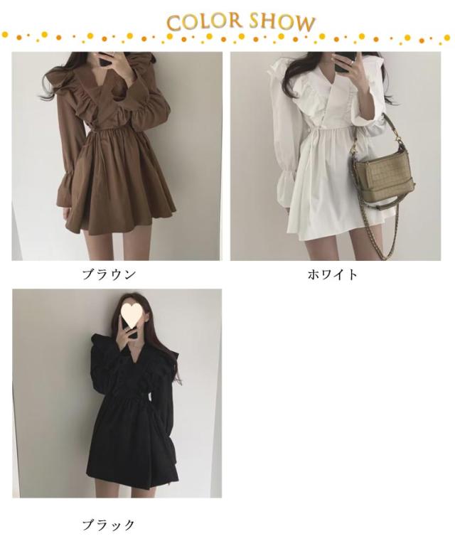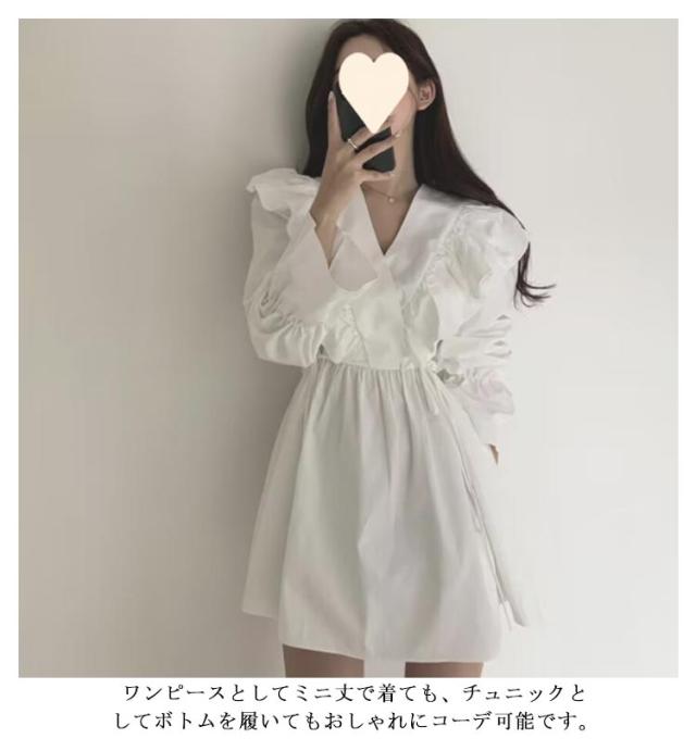 フリル 地雷系 韓国ファッション ミニスカ ウェストマーク ミニ丈 量産型 チュニック レディース ビッグカラー 長袖 襟付き スカート 量産型 かわいい ガーリー フェミニン フレンチガーリー 量産型 シンプル 女子会