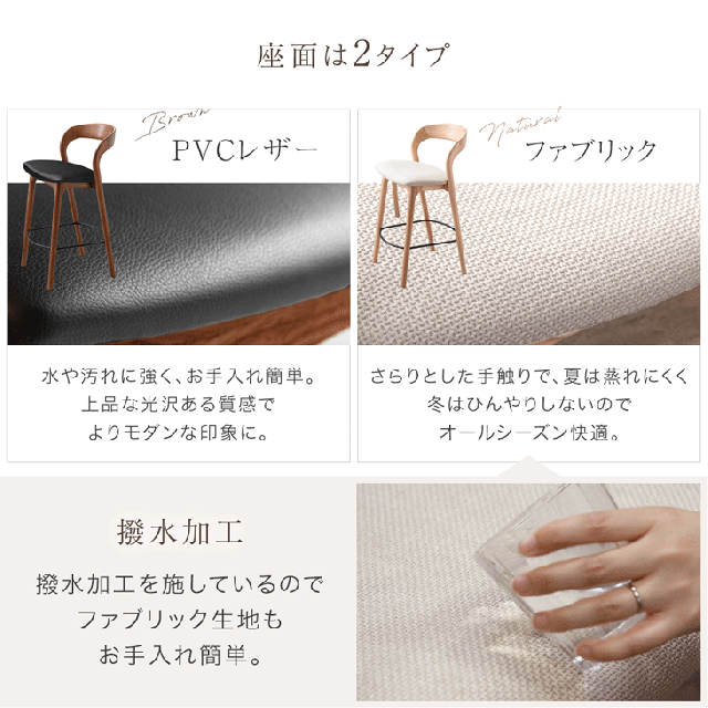 ナチュラル(布座面:ベージュ)、ブラウン(PVC座面:ブラック)