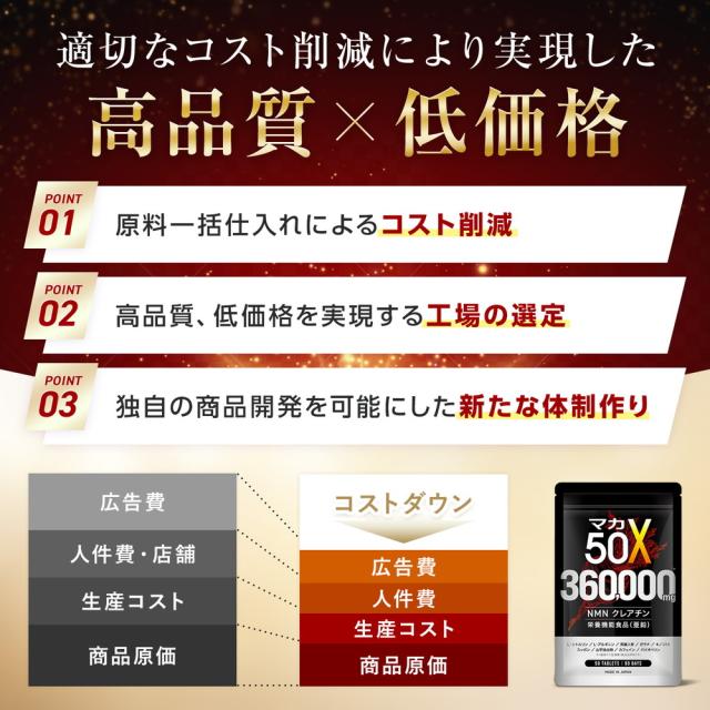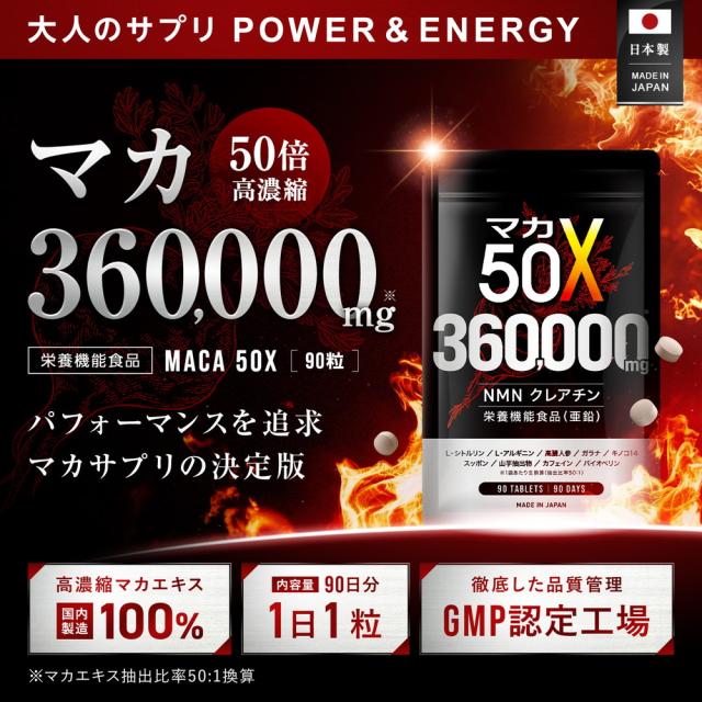 マカ サプリ 50倍濃縮 360000mg 亜鉛 日本製 1日1粒 90日分 シトルリン アルギニン NMN クレアチン 高麗人参 すっぽん GMP認定工場 栄養機能食品 サプリメント