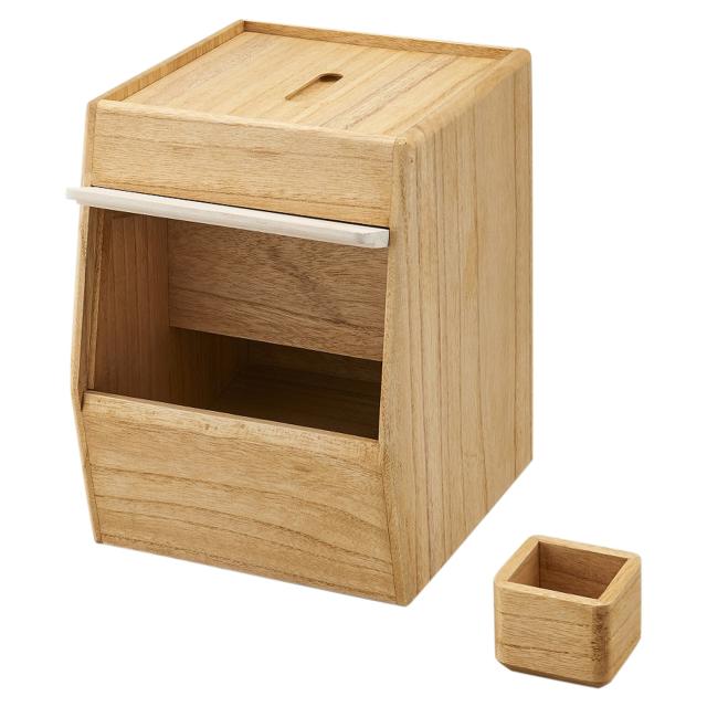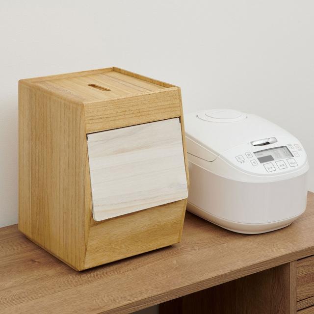 桐の魅力をもっと多くの方に伝えたい!その想いから【kirisai-桐で彩る豊かな暮らし】立ち上げました。kirisaiは「桐の優れた特性」を活かしながら暮らしを豊かに彩る新しい桐の道具を作ります。桐製の米びつは調湿性に優れ、お米の保存にピッタリ。水拭き可能でお手入れも簡単です。片手で簡単に開閉できるフラップ式扉採用。上部からお米を補充し前面下からお米を取るので古いお米がたまりにくい構造になってます。お米を5kgまで収納できます。桐製の1合升付き。