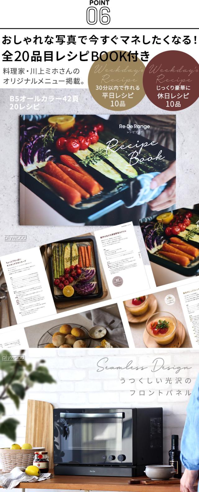 ビルトインオーブンレンジのようなシームレスな佇まいと直感的な使い心地をきわめたRe・De Rangeが登場。「小型サイズが良いけど、機能も捨てがたい…」そんな声に応えたコンパクト史上 最高クラスのオーブンレンジです。市場の「コンパクト=低機能」の常識を覆し、高性能センサー搭載のレンジ機能と、高火力のオーブン・グリル機能はプロの料理家も納得の1台です。暮らしに寄り添った気軽に始めて迷わず選べるレシピブックも付属。