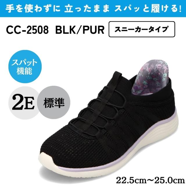 スパットシューズ 手を使わずに履ける レディース スニーカー メッシュ 通気性 ムレにくい 入院 リハビリ 室内作業 ローカット スリッポン ハンズフリー 着脱簡単 履きやすい シューズ 靴 ブラック×パープル セダークレスト CEDAR CREST CC-2508