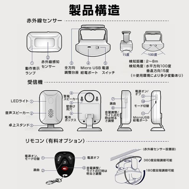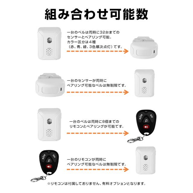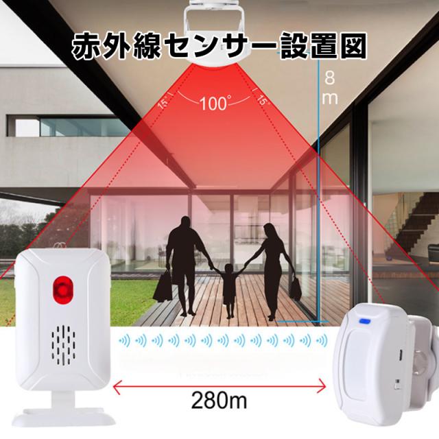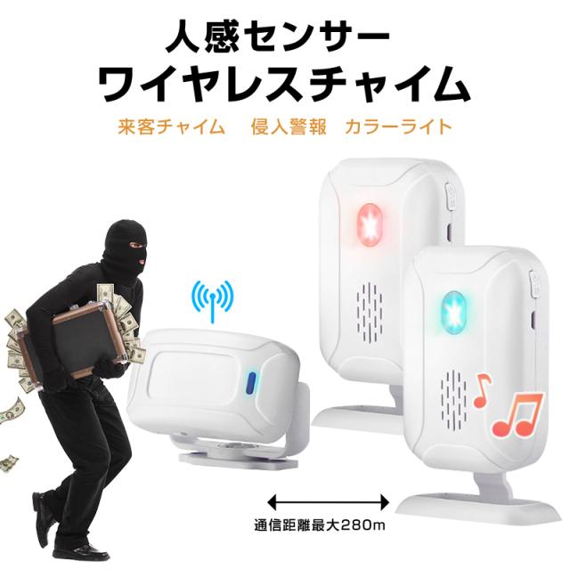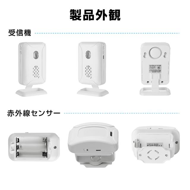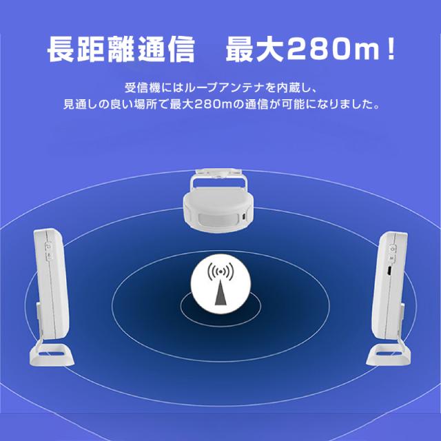 人感センサー ワイヤレスチャイム 受信機2個と赤外線センサー1個セット 屋内用 防犯アラーム 防犯センサー 長距離通信 来客 防犯 大音量 介護 家庭用 業務用