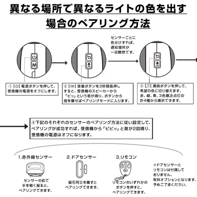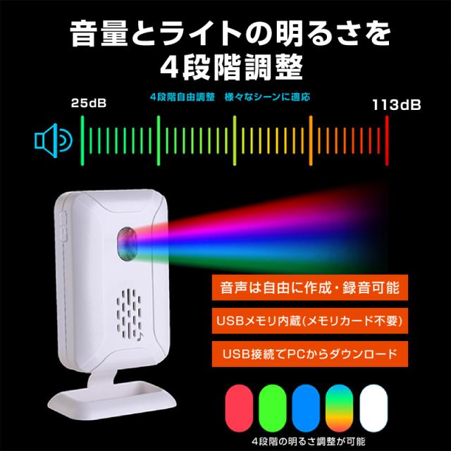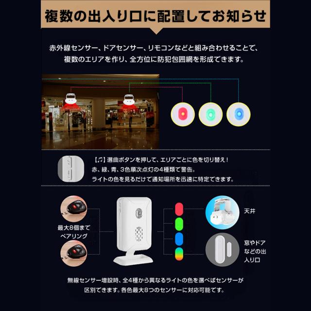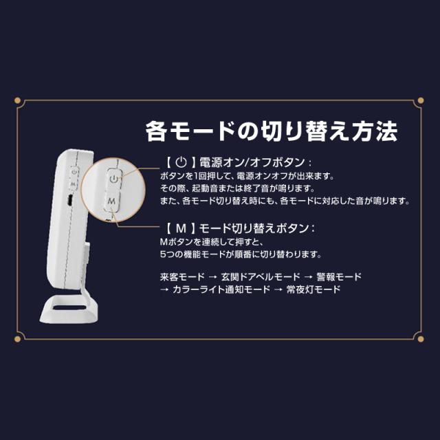 来客通知+ドアベル+警報+カラーライト+常夜灯の多目的に対応。