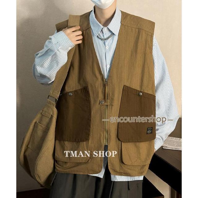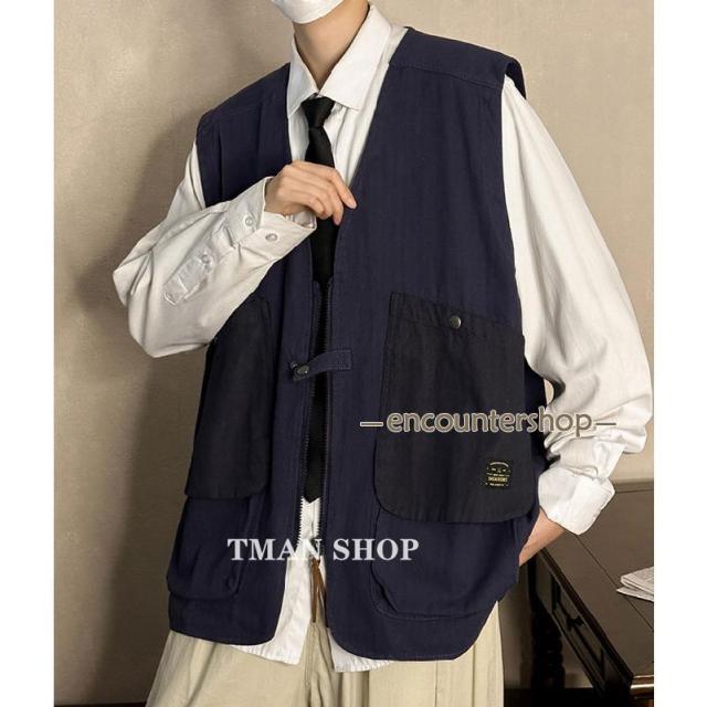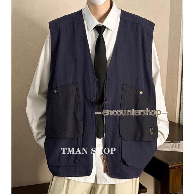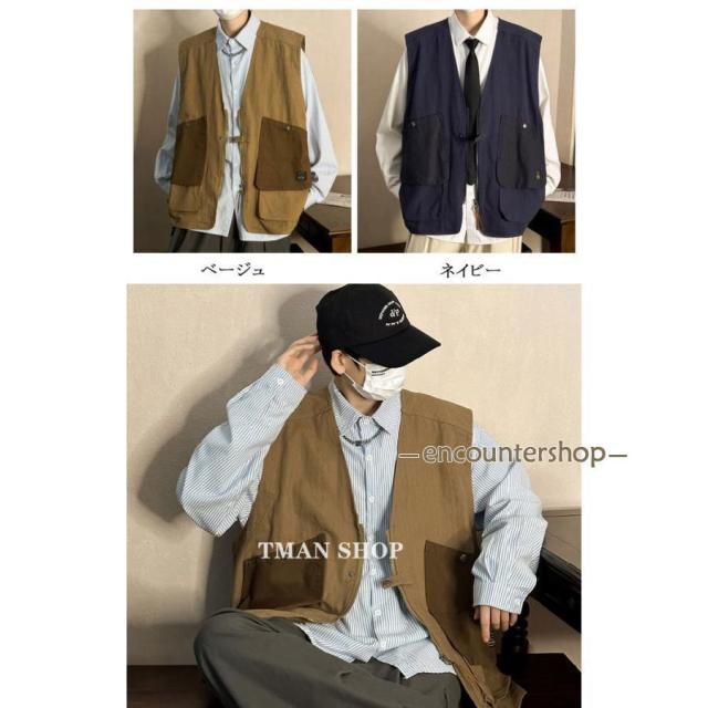 ベスト メンズ ワークベスト ポケット付き サマーベスト チョッメンズファッション トップス ベスト ジレ