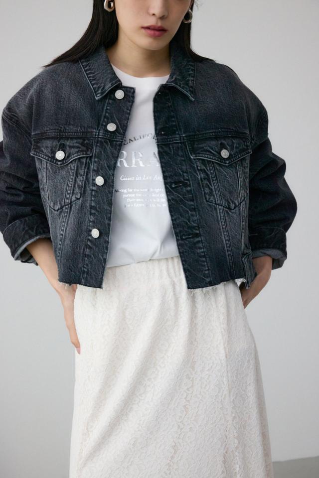 トレンドのショート丈と裾のイレヘムデザインがポイントのデニムジャケットです。