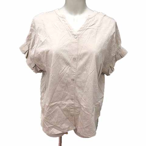 【中古】イッカ ikka ブラウス シャツ Vネック 半袖 M ベージュ /YK レディース