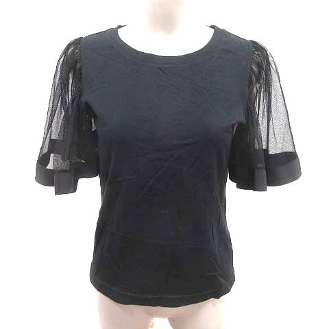 【中古】レイビームス Ray Beams カットソー 切替 チュール 五分袖 黒 ブラック /YK レディース