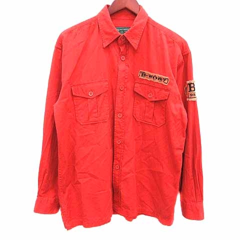 【中古】ハズビーン HASBEEN ステンカラージャケット シャツ ワッペン 長袖 L 赤 レッド /YK ●RY メンズ