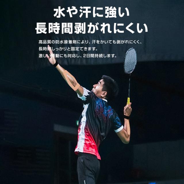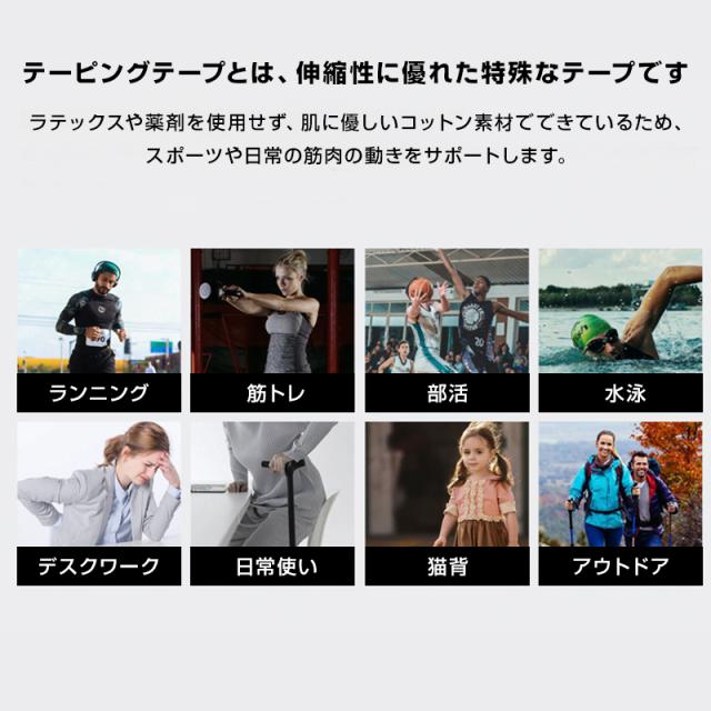 高い伸縮性と通気性で、スポーツ時の動きを快適にサポートするテーピングテープです。