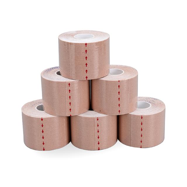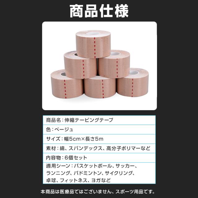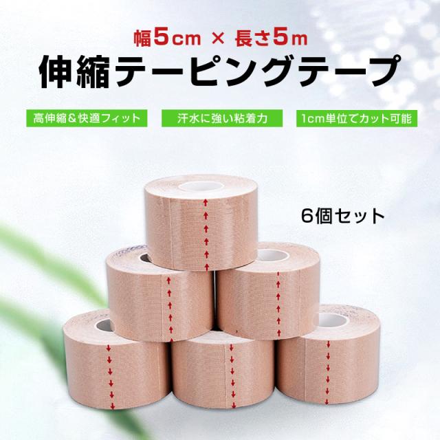 テーピングテープ スポーツテーピング 伸縮 幅5cm*長さ5m 高弾力 強粘着 サポート 肩 膝 関節 全身使用可 防滴 通気性 ベージュ 軽量 目盛り フリーカット 便利