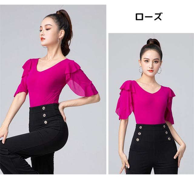 全6色 社交ダンス トップス レオタード式 社交ダンス衣装 レオタード 大きいサイズ フリル ダンス用シャツ ダンスTシャツ 社交ダンス ラテンダンス ダンスウェア 練習着 長袖 カラオケ衣装 大きいサイズ レッスンウェア