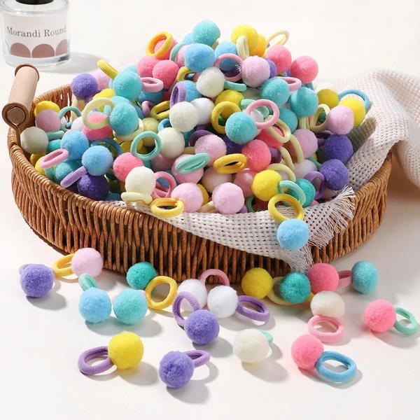 女の子のための弾性ヘアバンド,ぬいぐるみボール,子供のための輪ゴム,甘いシュシュ,ヘアクリップ,ベビーヘアアクセサリー,20個