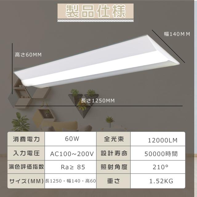 ★200LM/Wの高輝度LEDチップを搭載します!12000lm高輝度、通常の蛍光灯により明るくなります。