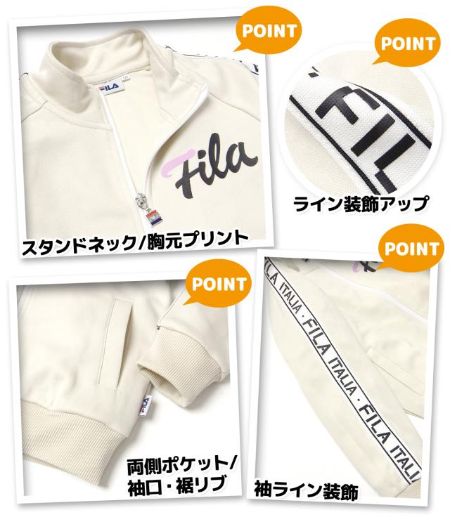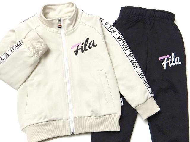 【送料無料】女児 キッズ FILA/フィラ 長袖 ウォームアップスーツ 上下組 ジャージ 袖ライン装飾 ロゴ 子供服 女の子 110cm 120cm 130cm iw-1246a-be