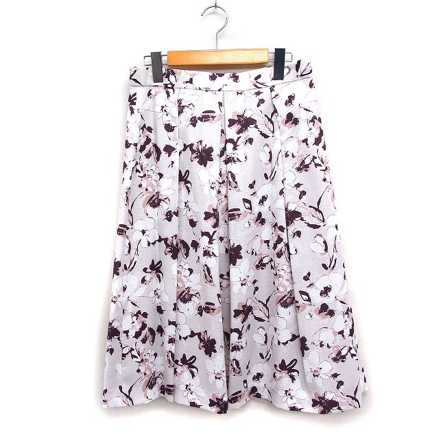 【中古】アリスバーリー Aylesbury 花柄 タック フレアスカート ミディ丈 ひざ下丈 11 オフベージュ ピンク /FT32
